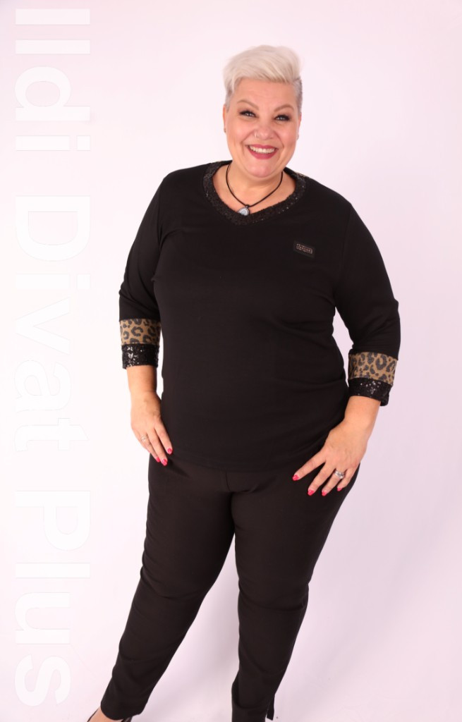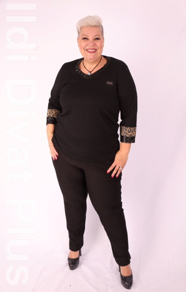 Darkwin fekete alapon ocelott betétes nyakán flitteres tunika.