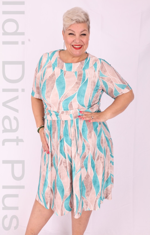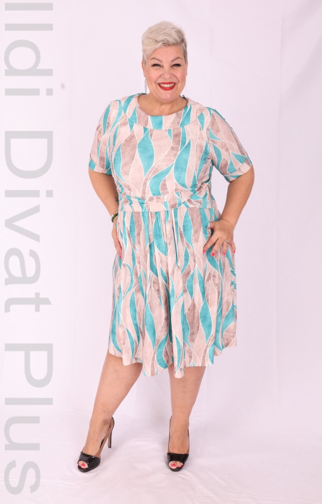 RK9 Beige-Zöld Mintás A-vonalú Ruha