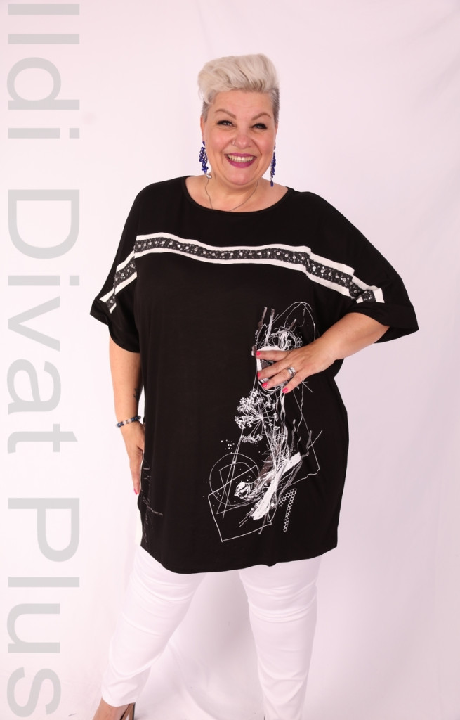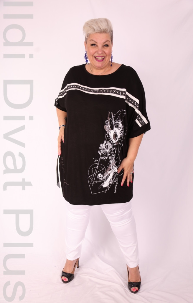 Sinyora Fekete-Fehér Mintás Köves Tunika