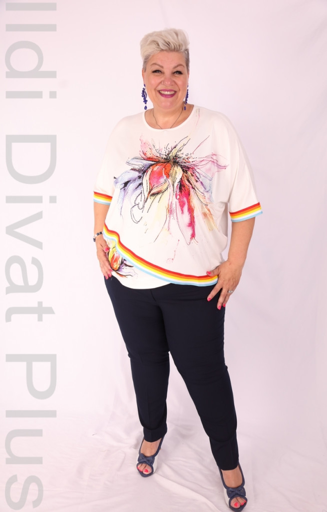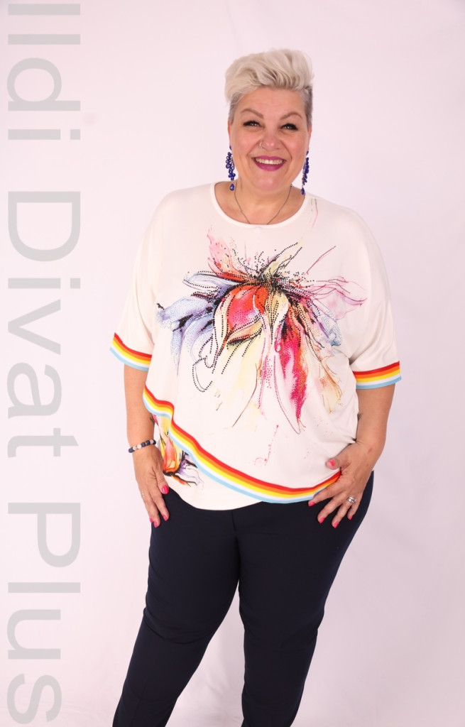 Sinyora Ekrü- Színes Virágos Köves Tunika