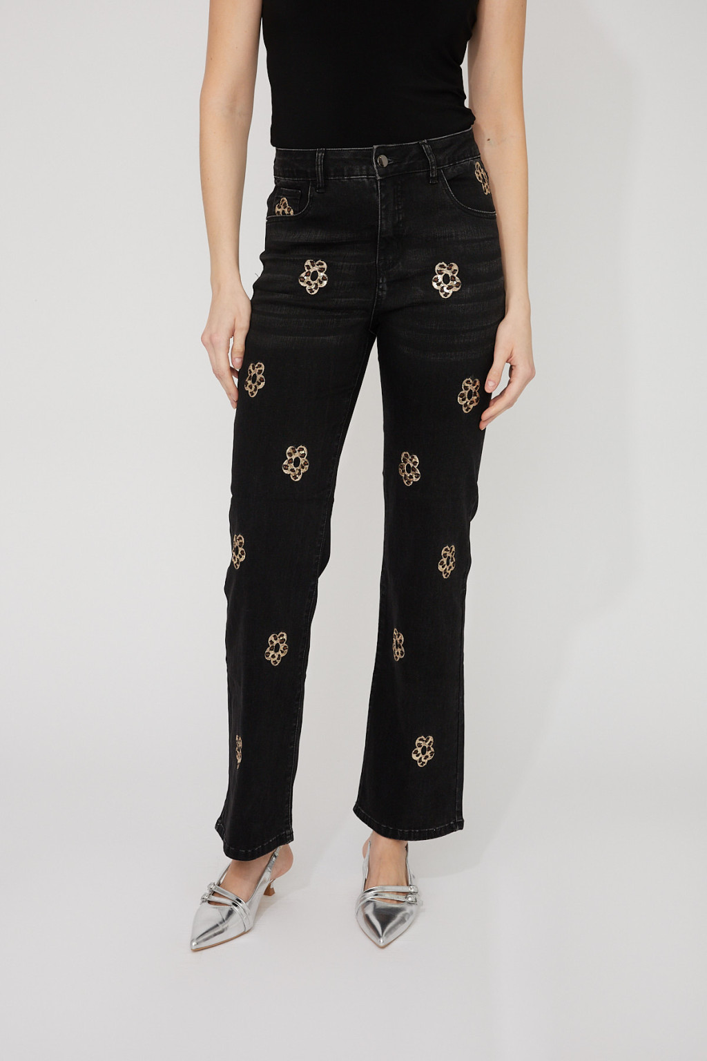 Frank Lyman Fekete -Virágos Farmer Nadrág