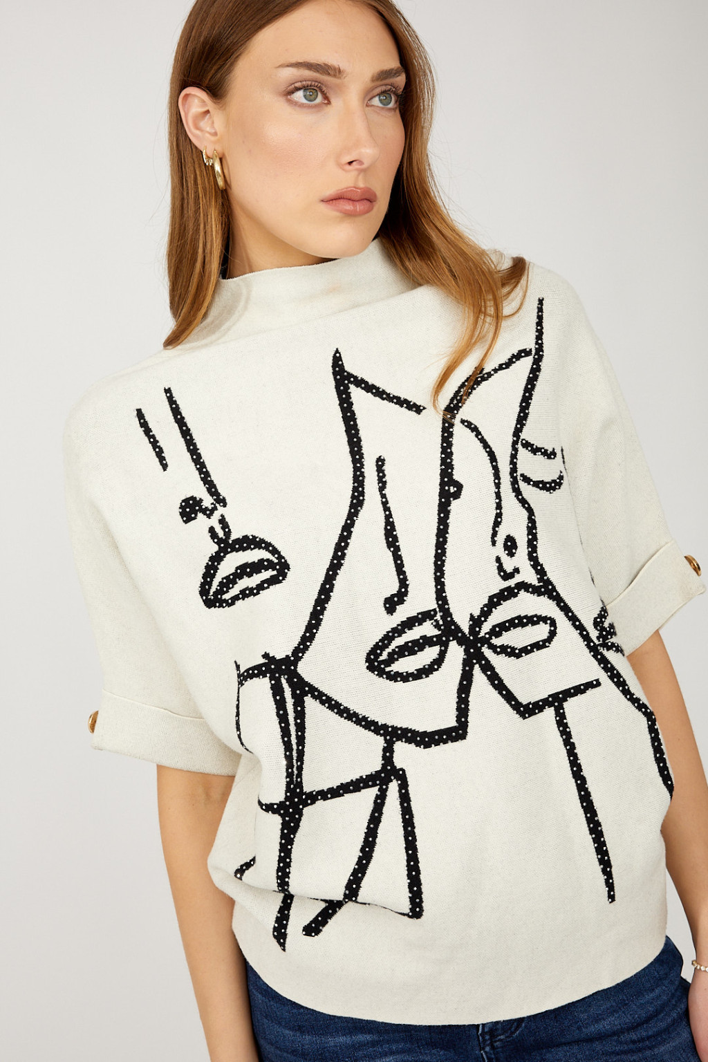 Frank Lyman Beige-Fekete Köves Art Felső