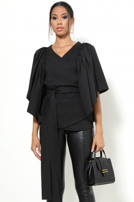 Amnesia fekete színű, átkötős, lebernyeges ujjú, V-kivágott, sportosan elegáns felső.