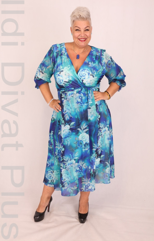 Monariss Kék-Zöld Virágos Muszlin Ruha
