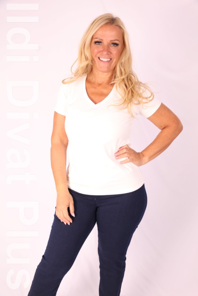 Latynka ekrü színű, V-kivágott, karcsúsított fazonú felső.