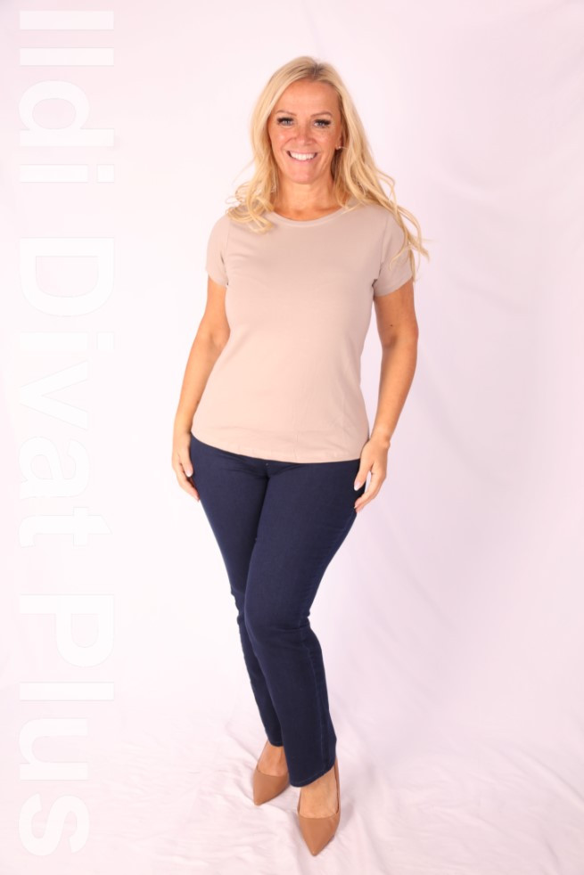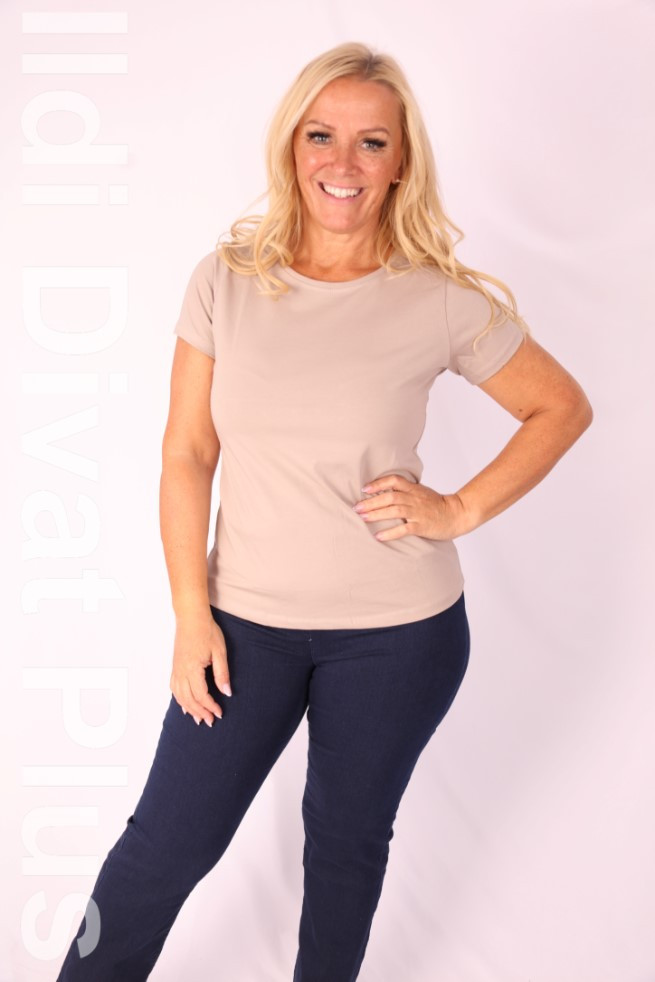 Latynka beige színű, kereknyakú, karcsúsított fazonú felső.