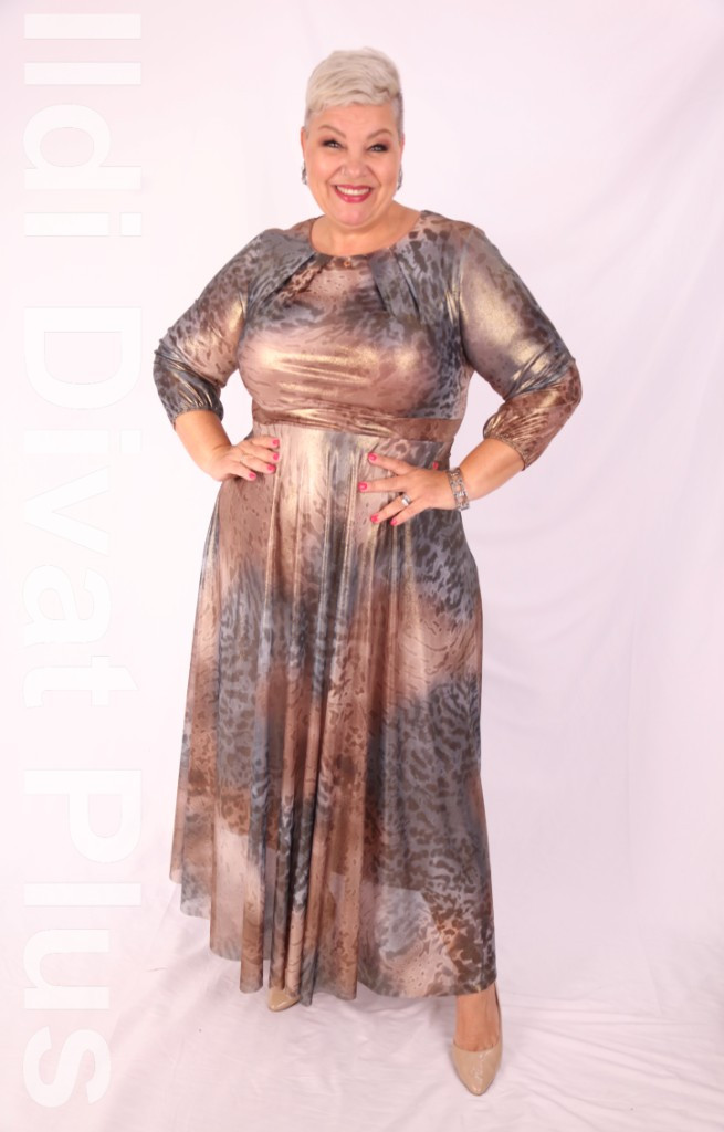 Trynite kék-arany csillogós derekán szabott maxi ruha.