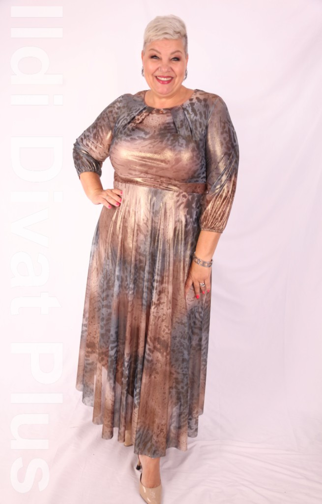 Trynite Kék-Arany Mintás Csillogós Maxi Ruha