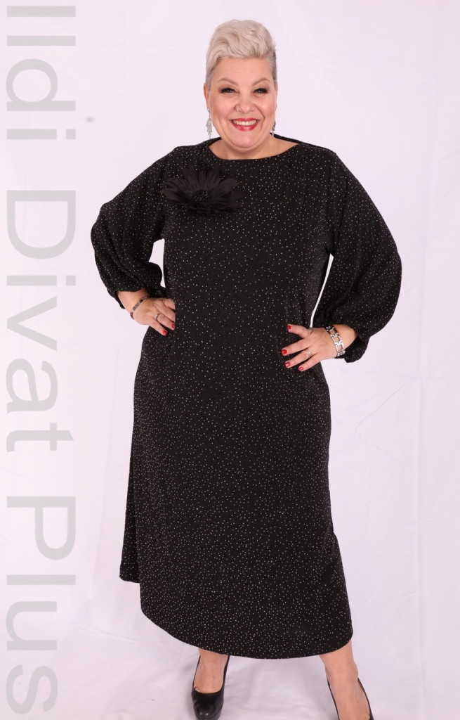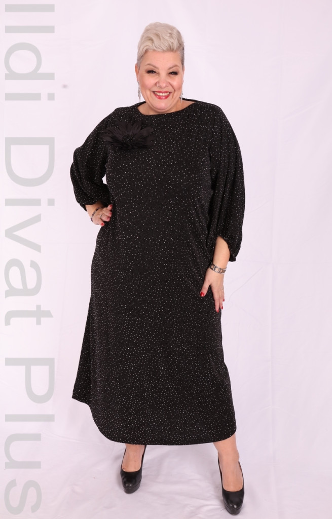 Darkwin fekete alapon ezüst apró köves nyakán virág díszes alaklmi ruha.