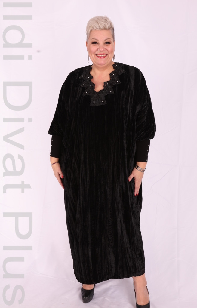 Darkwin fekete nyakán köves csipkés rakott bársony ruha.