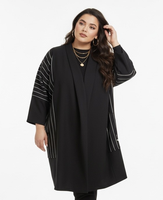 Dakwin Fekete-Fehér Csíkos Kardigán