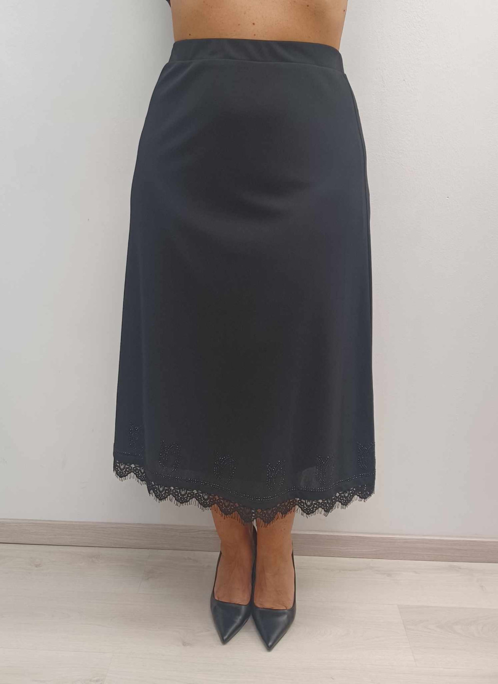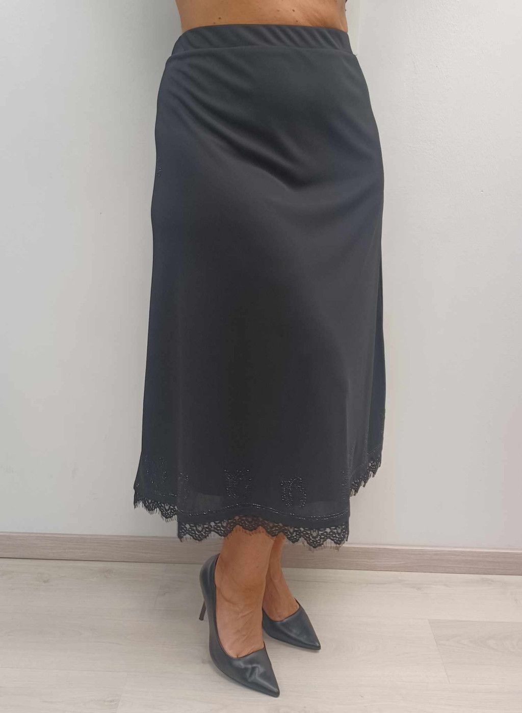 Lyon fekete gumis derekú alján csipkés köves alkalmi szoknya.