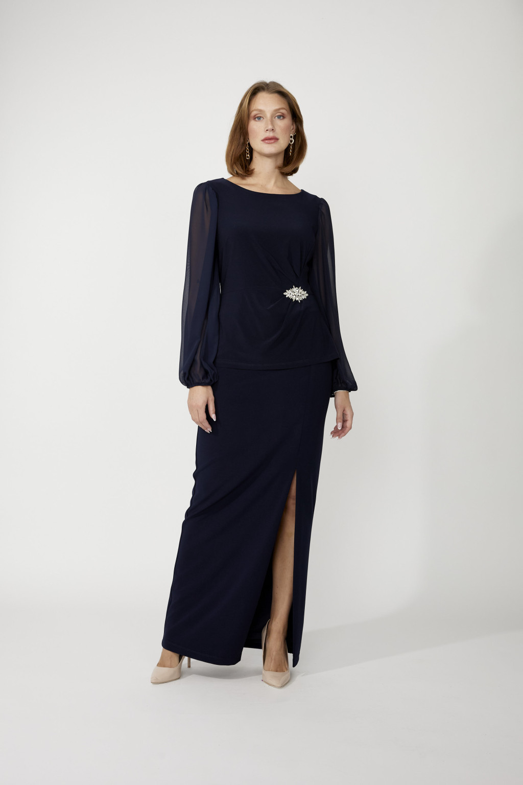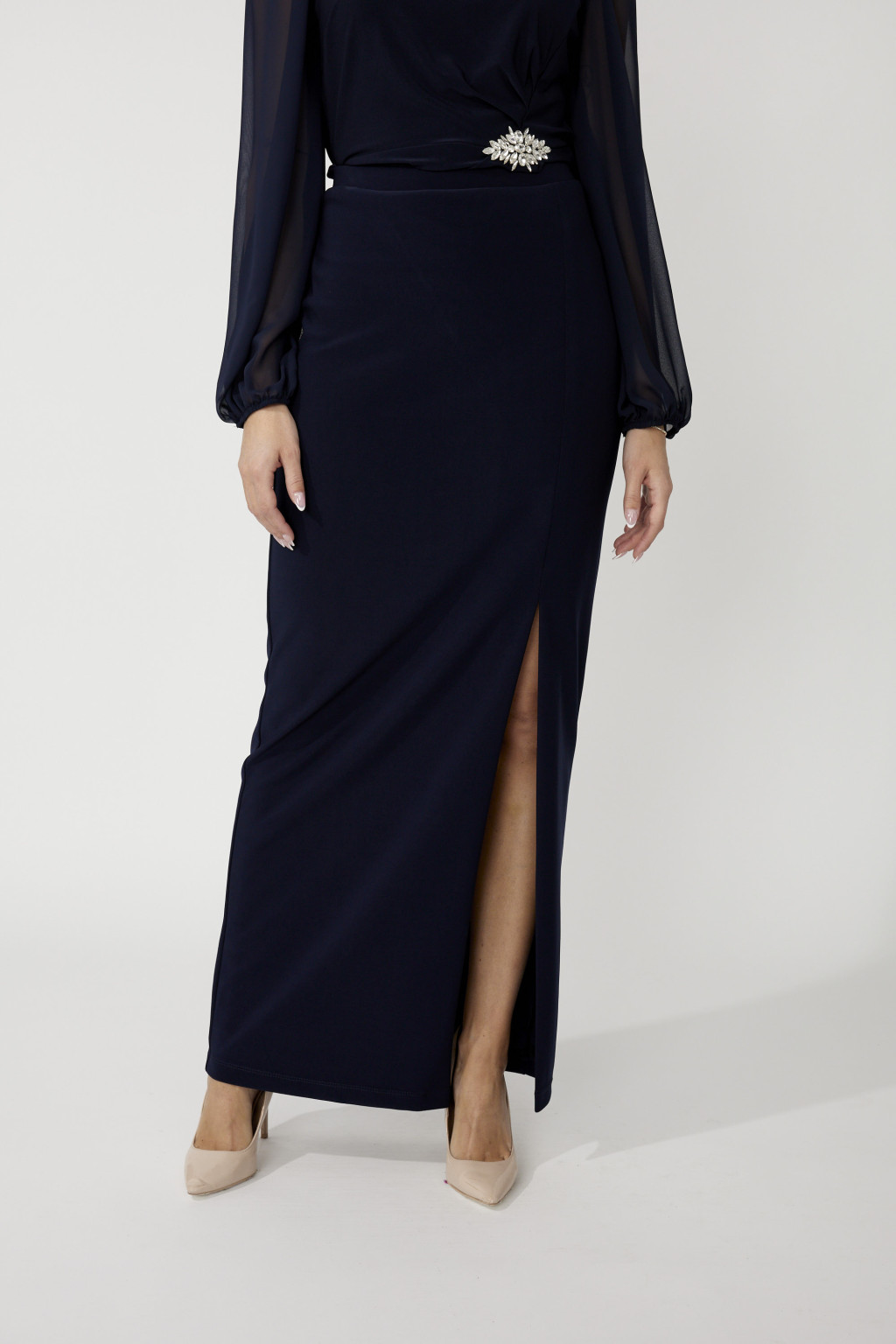Frank Lyman sötétkék gumis derekú elején sliccelt alkalmi szoknya.