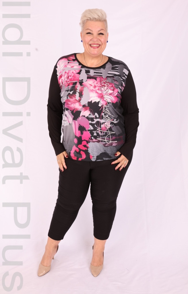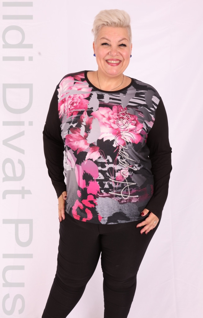 Joy Of Life Őszi fekete-pink mintás hosszú ujjú felső.