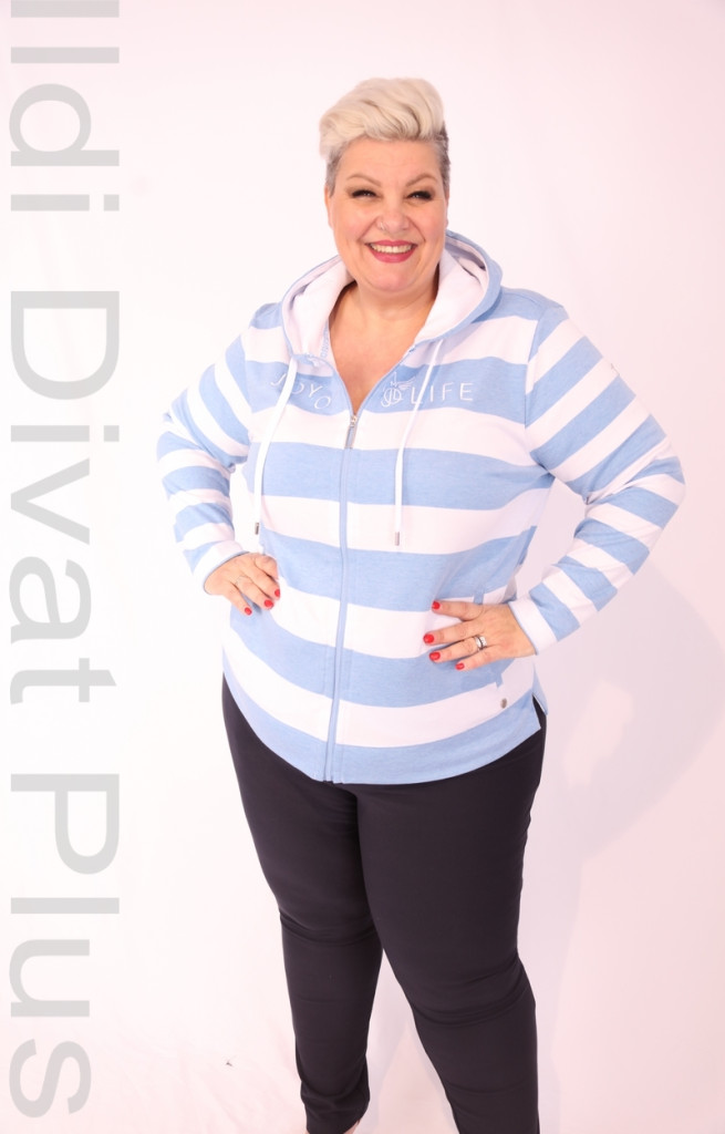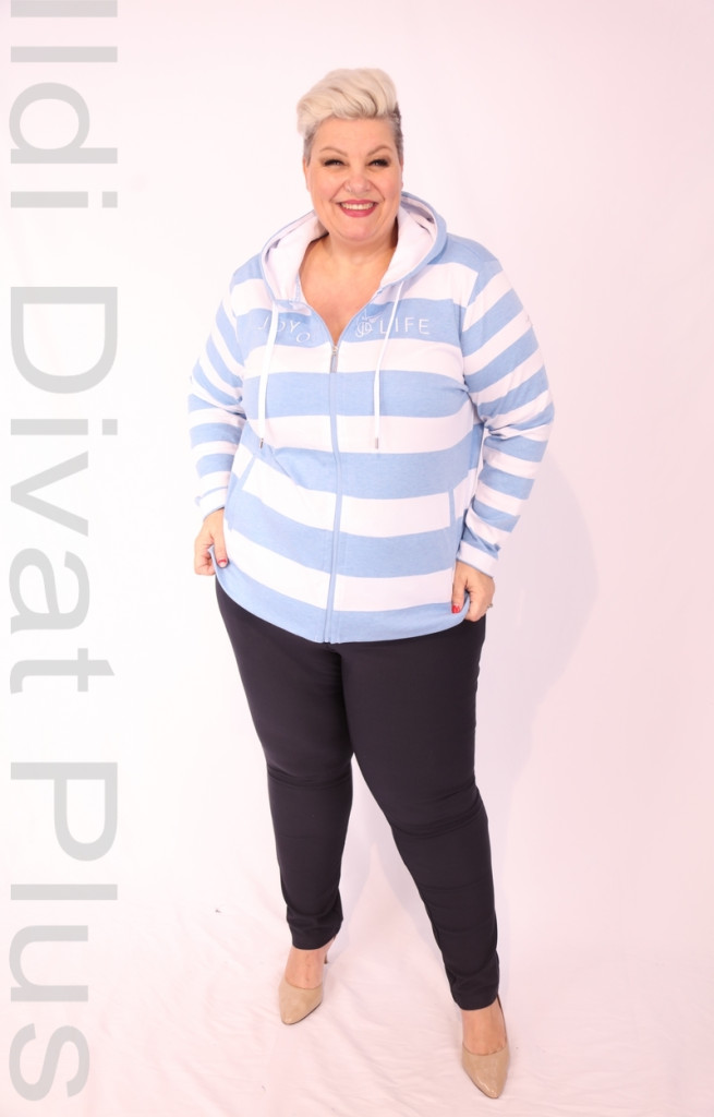 Joy Of Life babkék-fehér csíkos zippes kapucnis kardigán.
