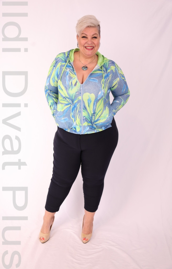 Joy Of Life kék alapon zöld virágos kapucnis,zippes felső.