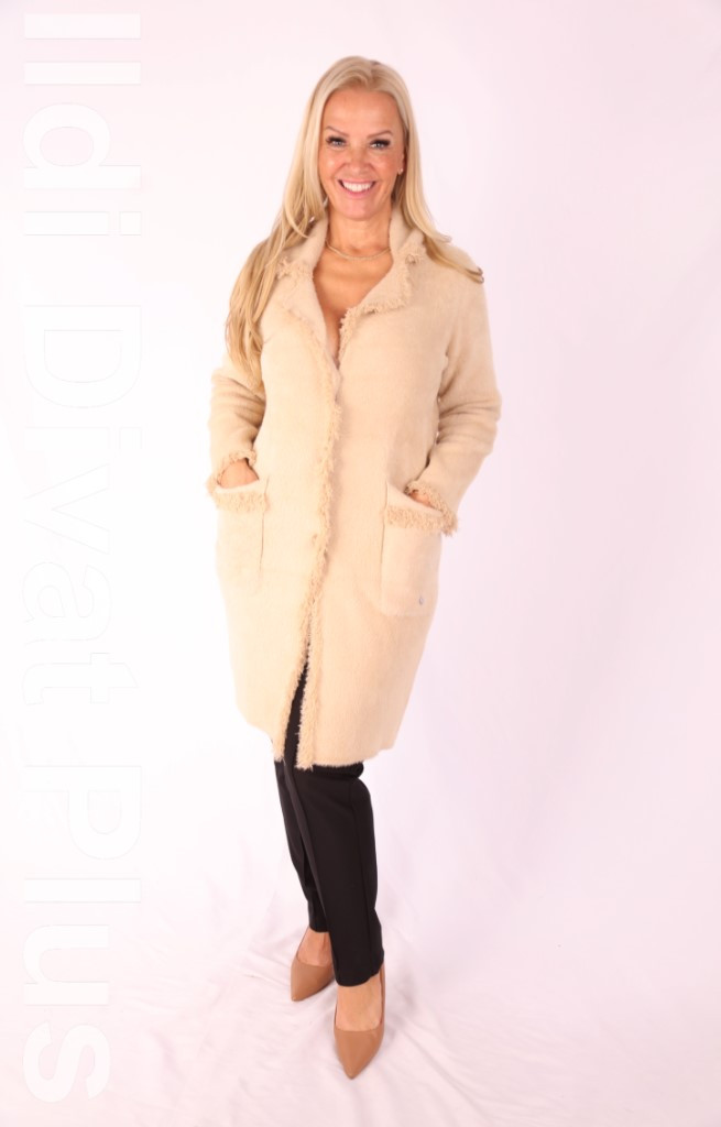 Joy Of Life beige galléros gombos pihe-puha hosszított kardigán