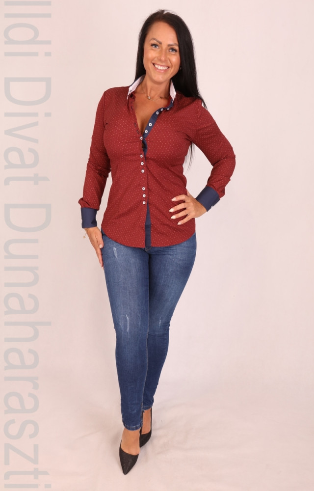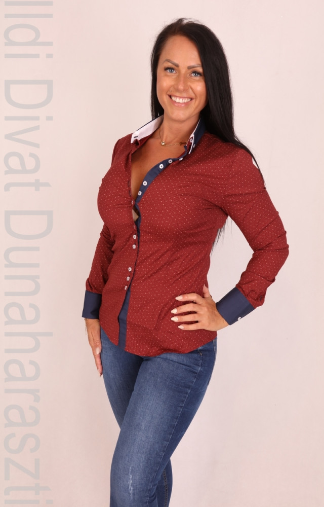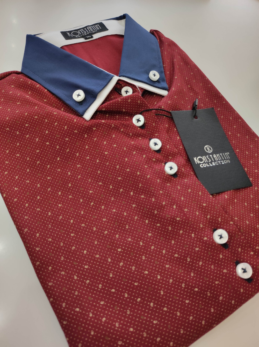 Konstantin bordó alapon barna apró mintás, dupla galléros, felhajtható mandzsettás, karcsúsított fazonú ing.