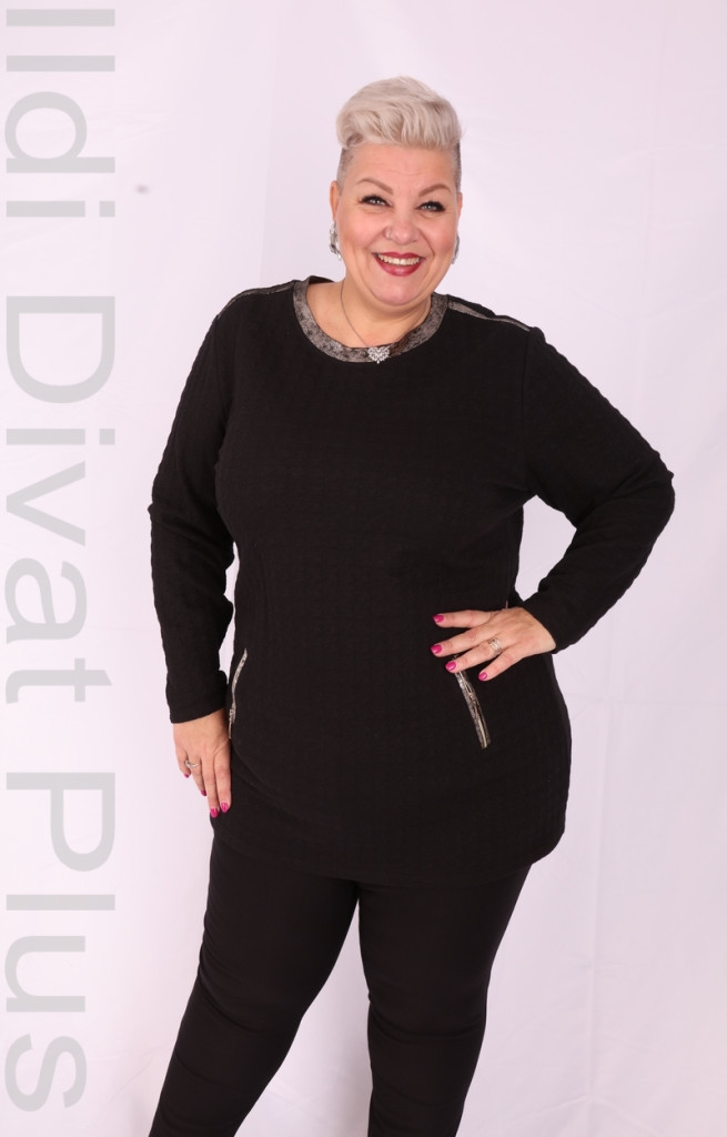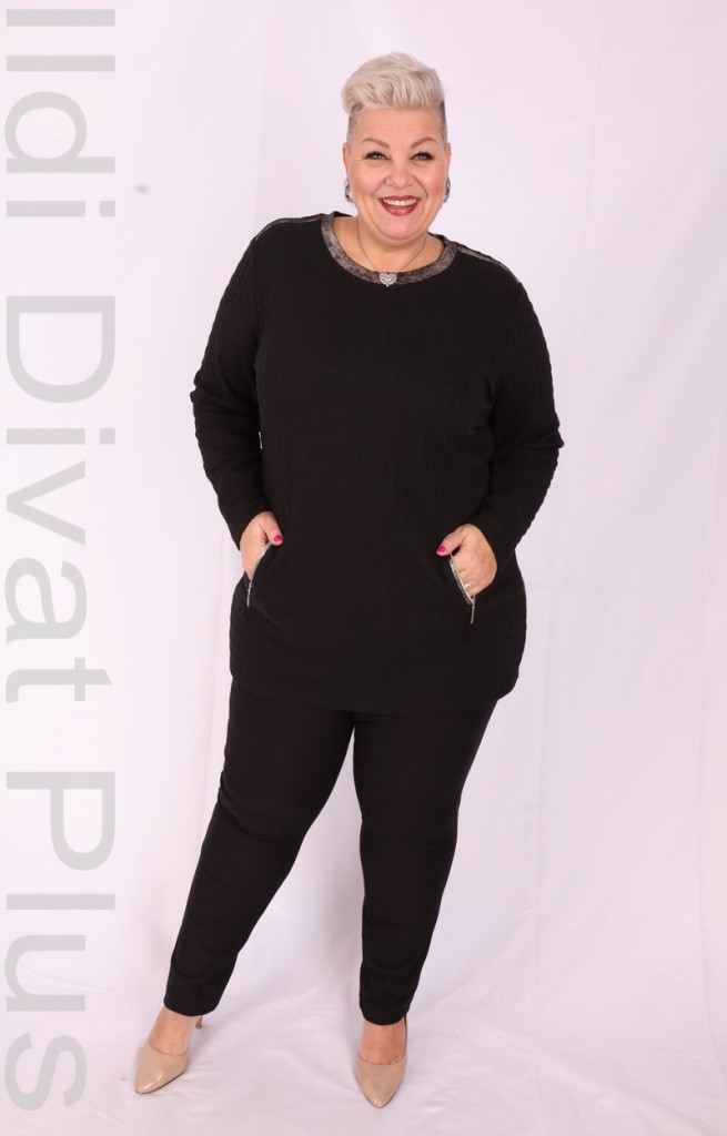 Livello Di Vita fekete anyagában mintás nyakán és zsebán bronz betétes tunika.