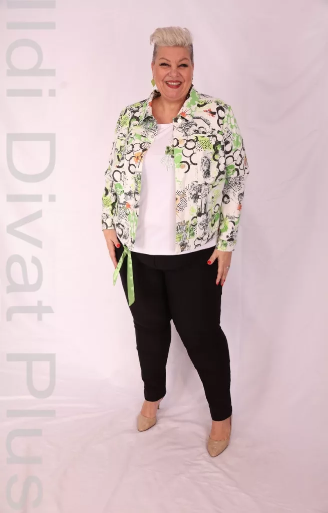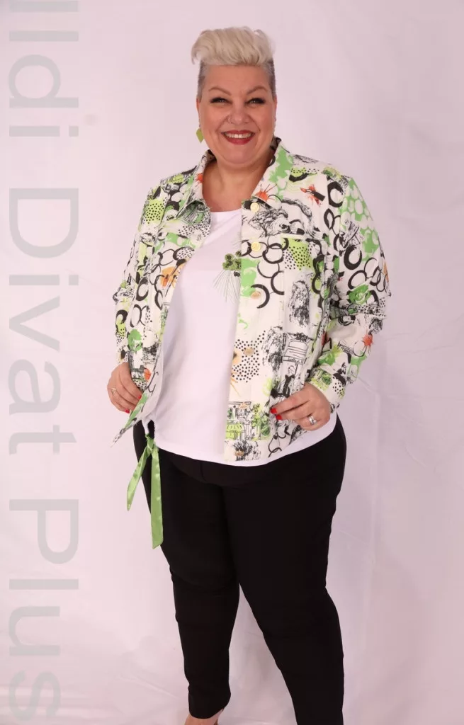 Livello Di Vita fehér alapon zöld-fekete mintás farmer anyagú gombos blézer kabátka.
