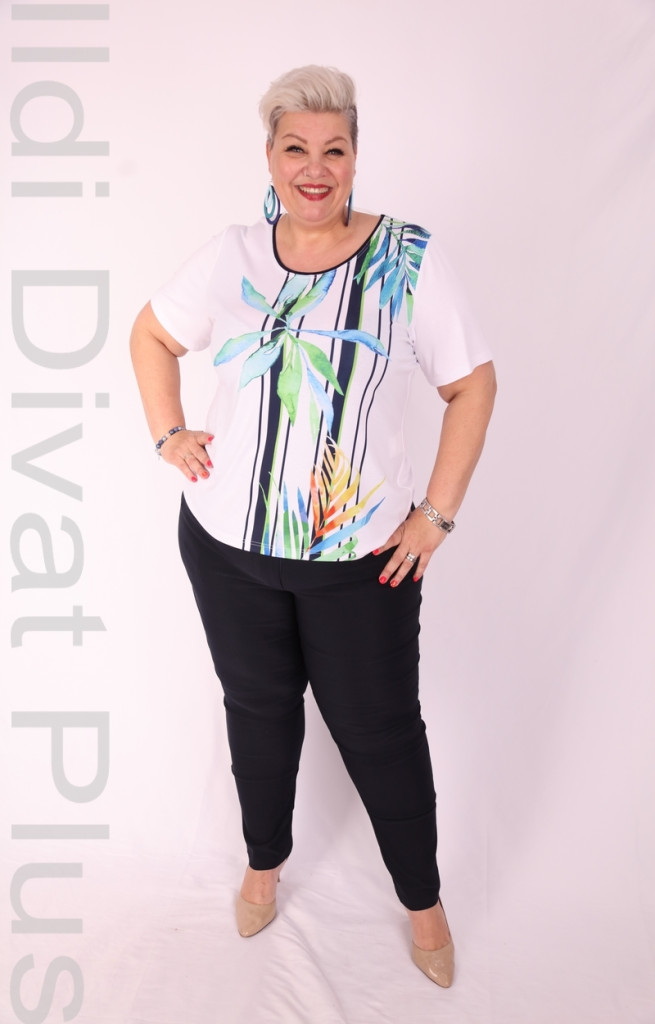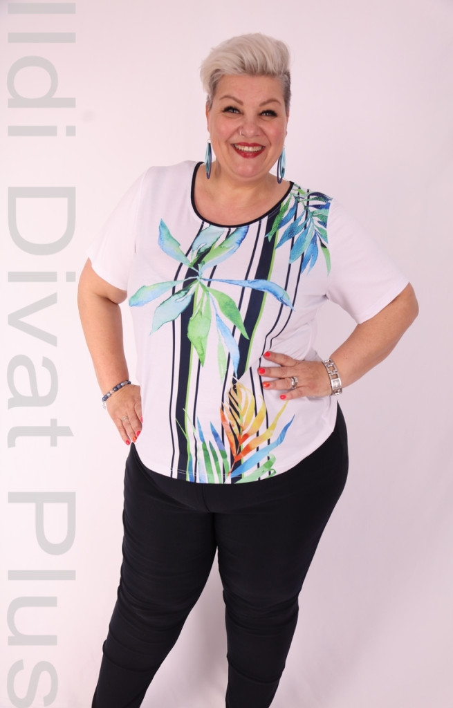 Livello Di Vita fehér alapon színes bambusz mintás rövid ujjú felső.