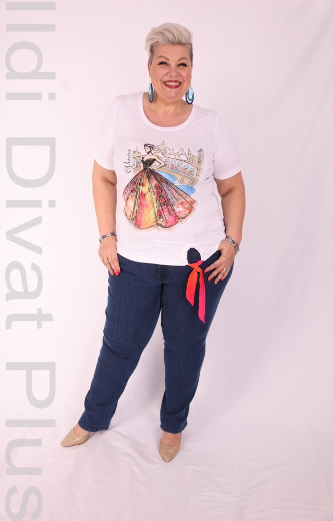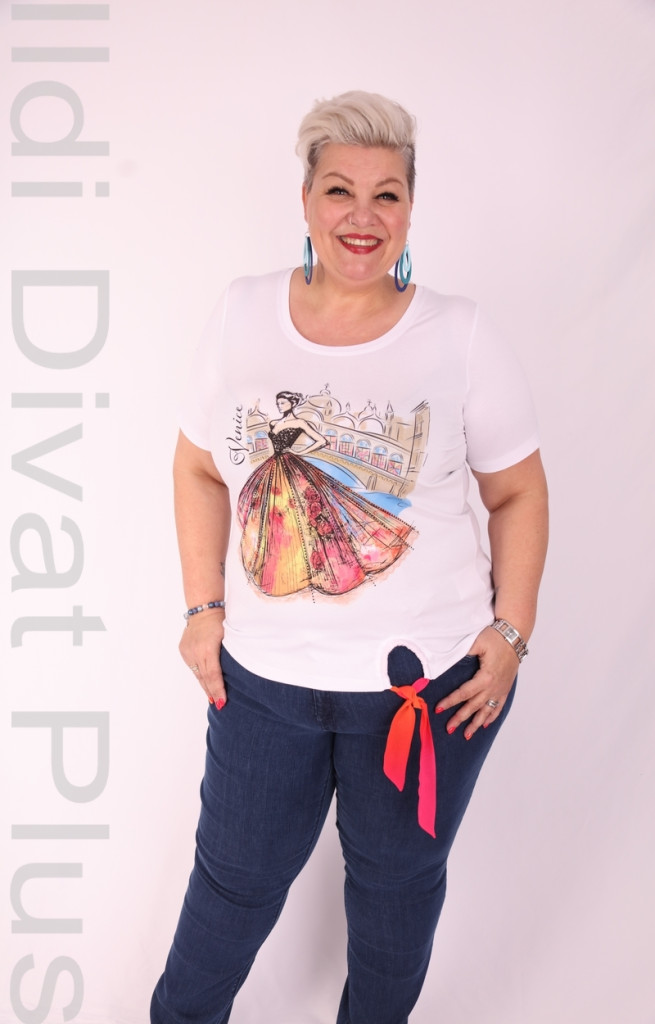 Livello Di Vita fehér alapon színes mintás köves alján kötős felső.