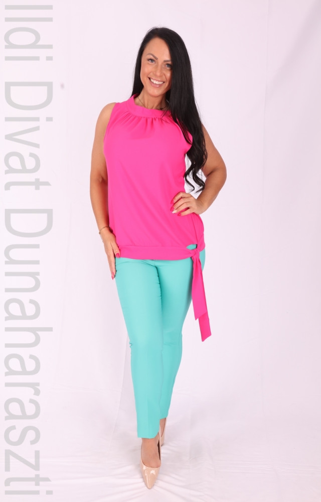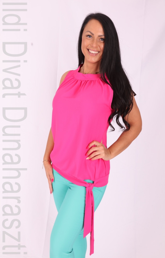 Mystic Day pink színű, nyakban magasan zárt, alján passzés és kötős, lenge fazonú blúz.
