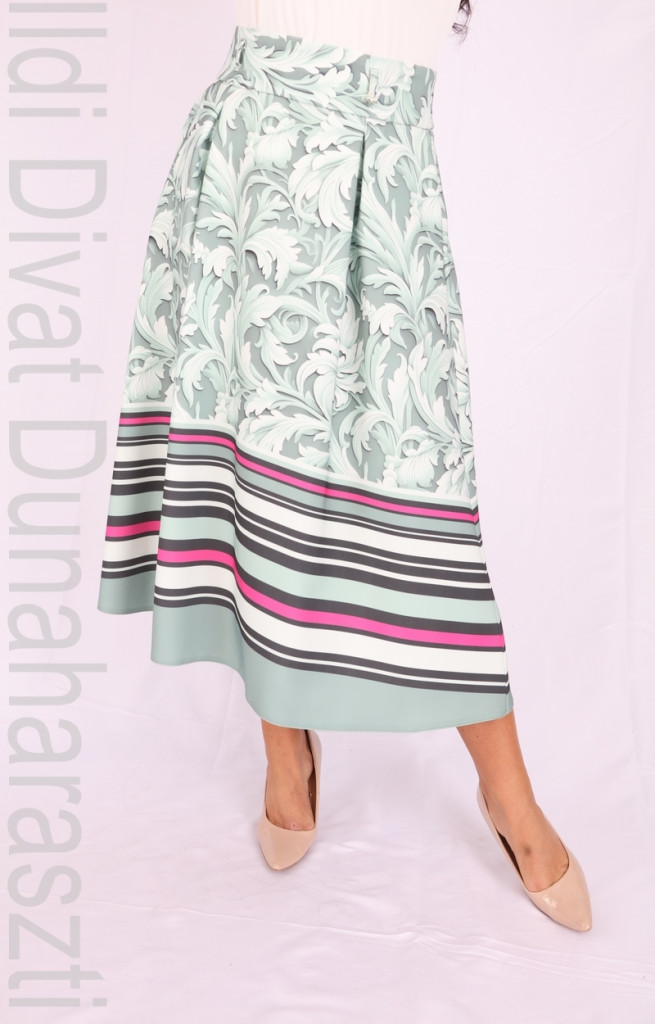 Mystic Day Zöld Barokk Mintás Midi Szoknya