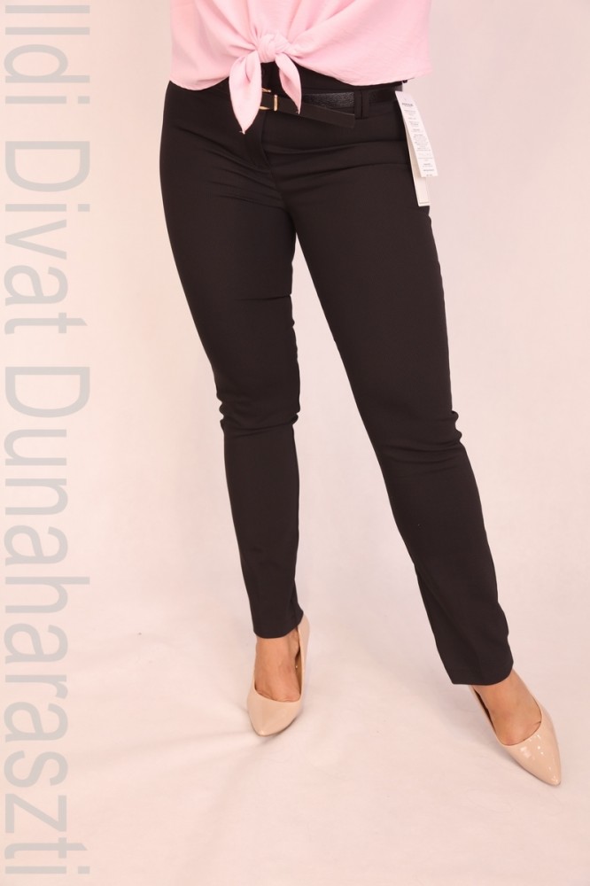 Rouge Avenue fekete alapon apró tű pöttyös, élére vasalt, derekán gombos és öves, díszzsebes, elegáns nadrág.
