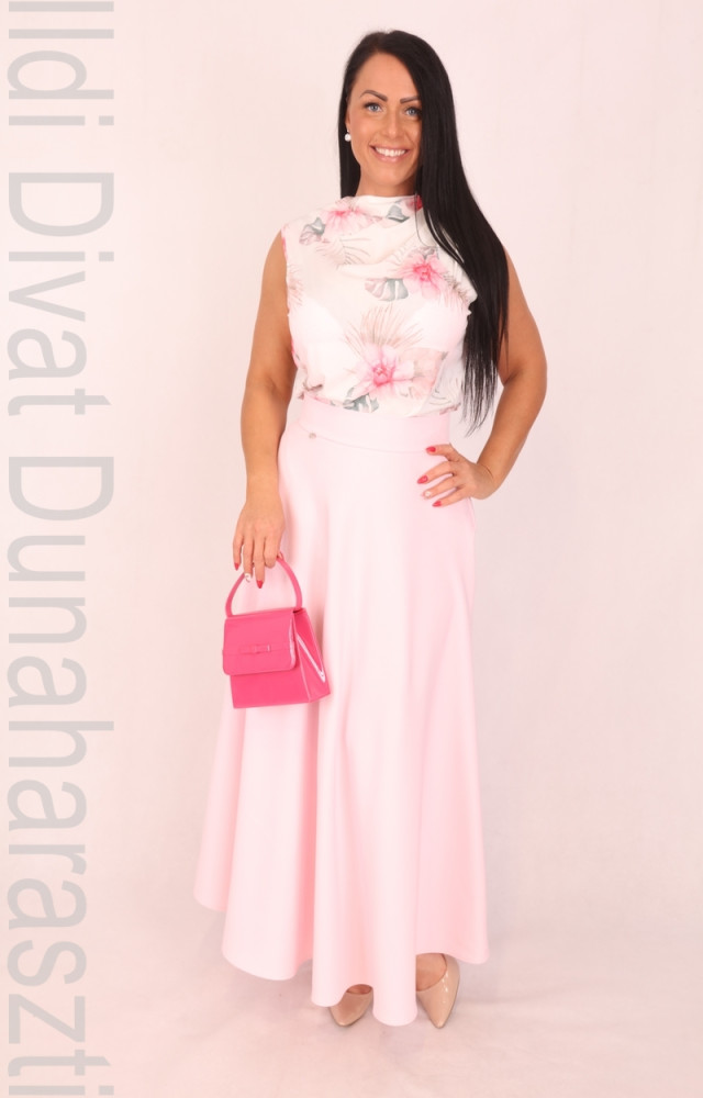 Tara Collection ekrü alapon trópusi mintás, zárt nyakú, váll résznél húzott és díszgombos, lezser fazonú blúz.