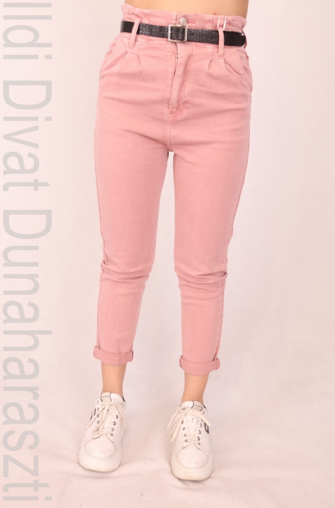 M.Sara mályva színű, elején és hátulján zsebes, derék részén gumírozott, 2 gombos, mom fit fazonú farmernadrág.