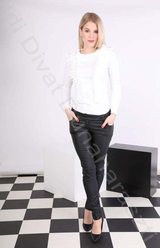 Envy Fashion fehér színű, elején fodor díszítéses, karcsúsított fazonú body.