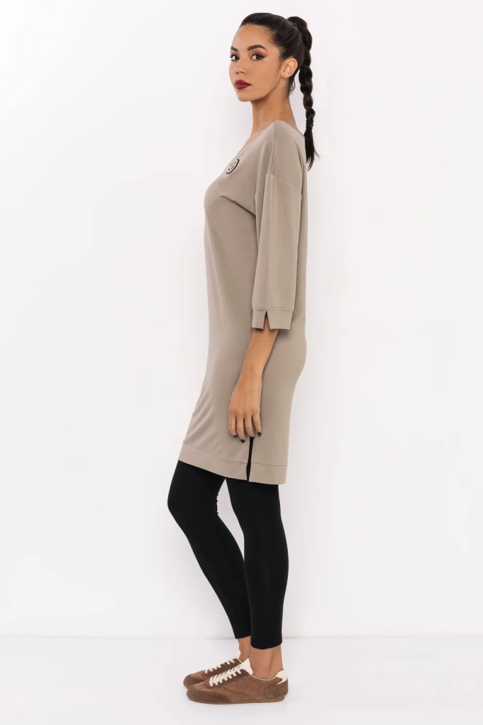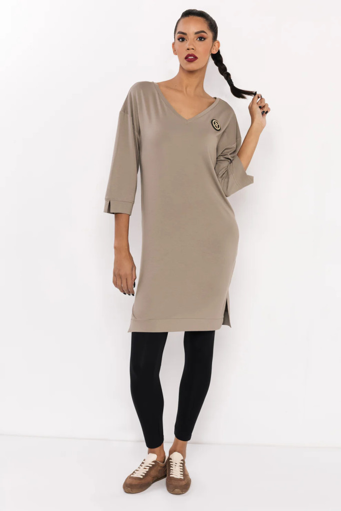A midi hossz és a háromnegyedes ujj stílusos, mégis praktikus megoldás, amely minden alkaton előnyösen mutat. A fangó és a klasszikus fekete színvariációk időtállóak, könnyen kombinálhatók más ruhadarabokkal és kiegészítőkkel, így a tunika a gardrób alapdarabjává válhat.