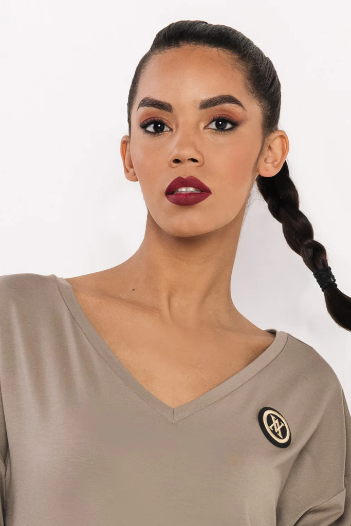 Az AMNESIA Diol tunika a laza elegáns stílust képvisel, amely kényelmes viseletet kínál a hétköznapokra és a szabadidős alkalmakra is. A viszkóz anyag lágy esésével kellemes viseletet biztosít, miközben légies és modern megjelenést kölcsönöz. A tunika letisztult vonalvezetése, a V-kivágás és a logóval díszített részletek különleges karaktert adnak ennek a darabnak.