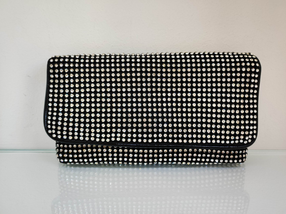 Alkalmi Fekete-Ezüst Téglalap Strasszos Táska