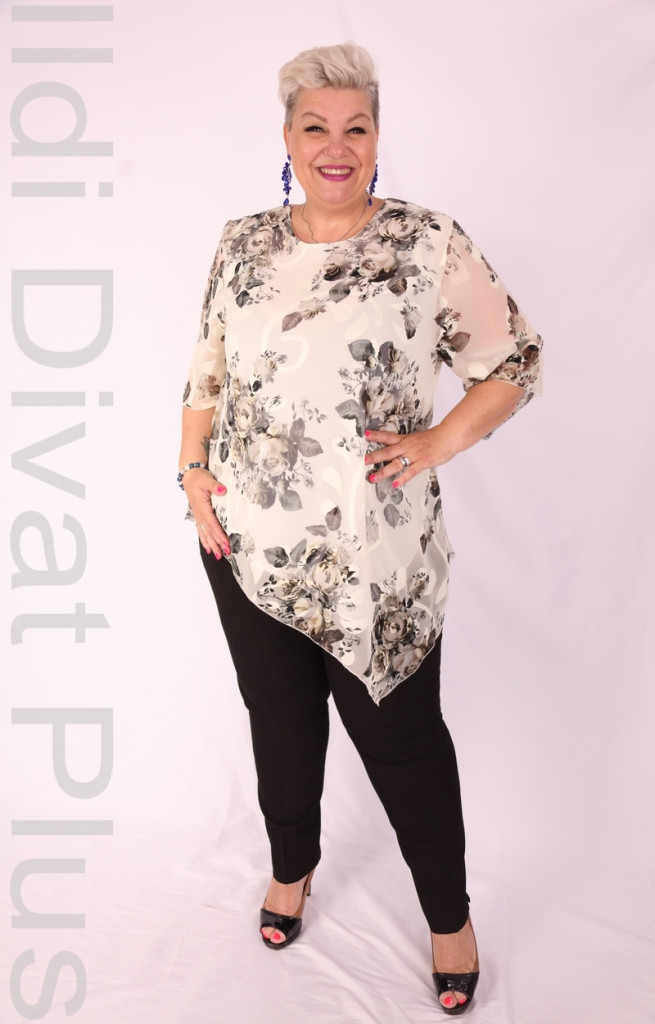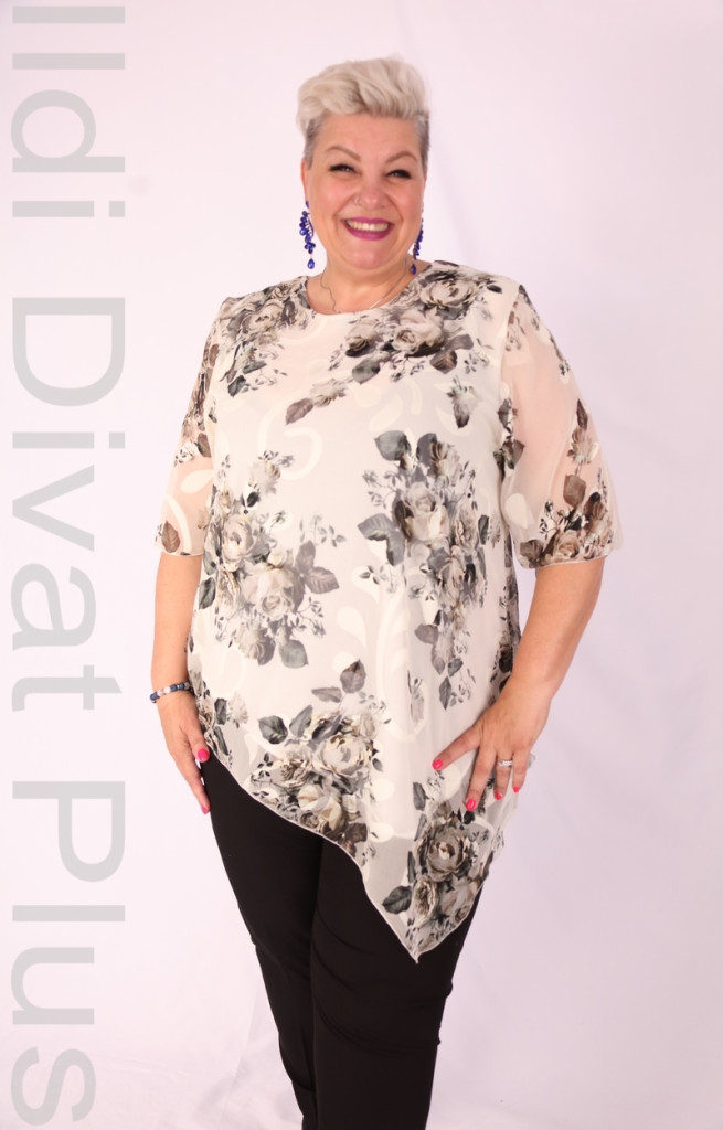 Eko beige-keki mintás alján aszimetrikus muszlin tunika.