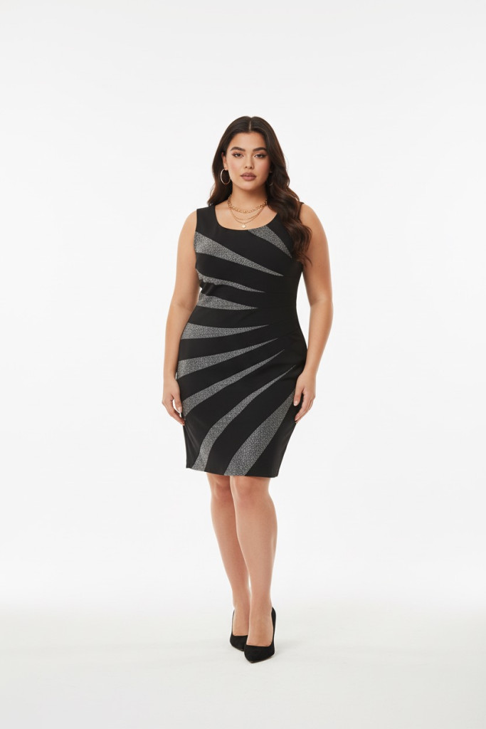 Fervente fekete alapon ezüst betétes alkalmi ruha.