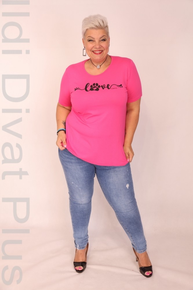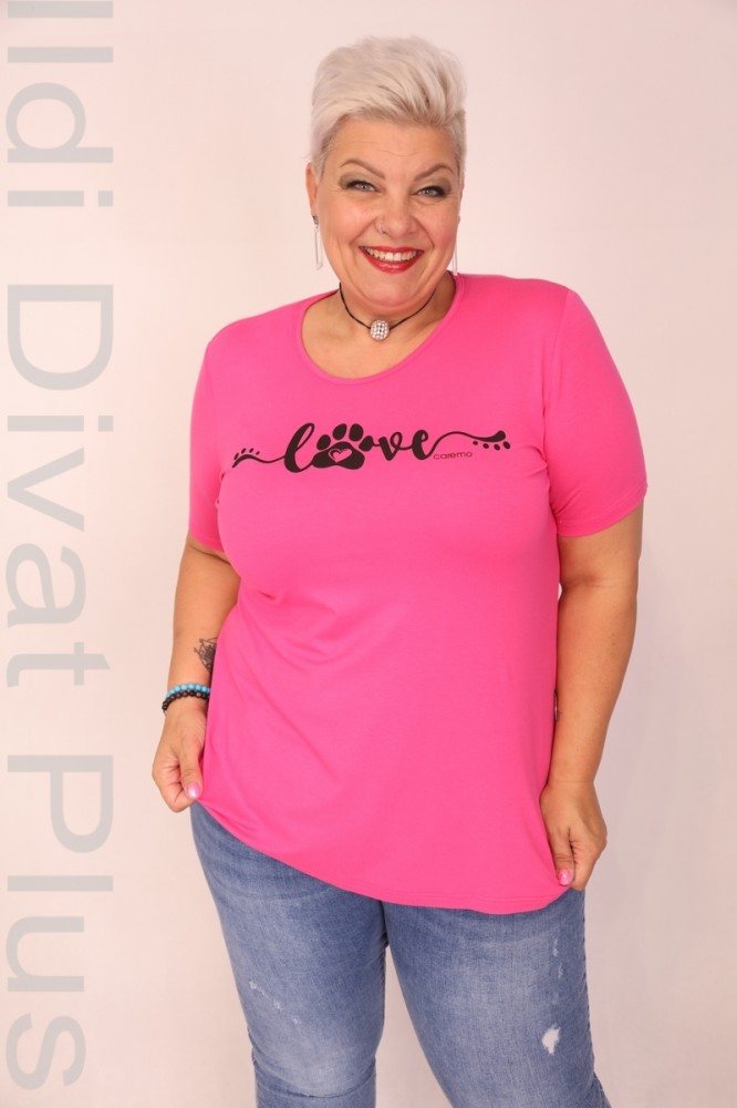 Caremo pink színű, kerek nyakú, elején filmnyomott, karcsúsított fazonú felső.