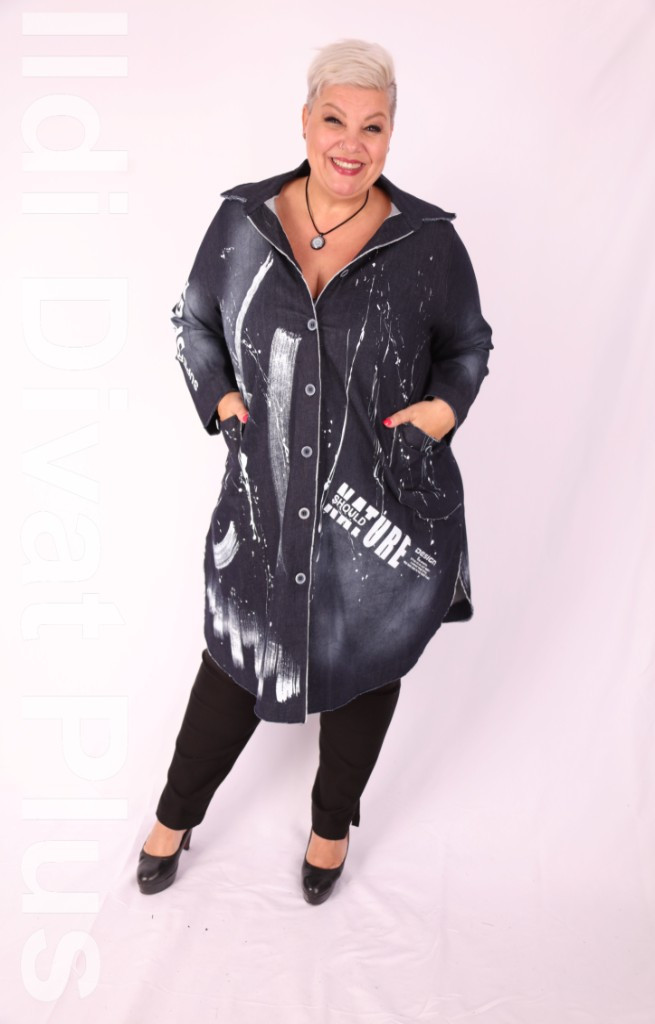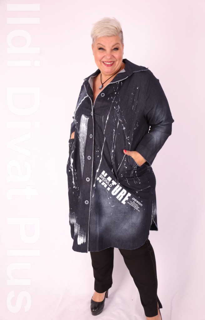 Darkwin indigókék fehér mintás gombos, galléros farmer kardigán.