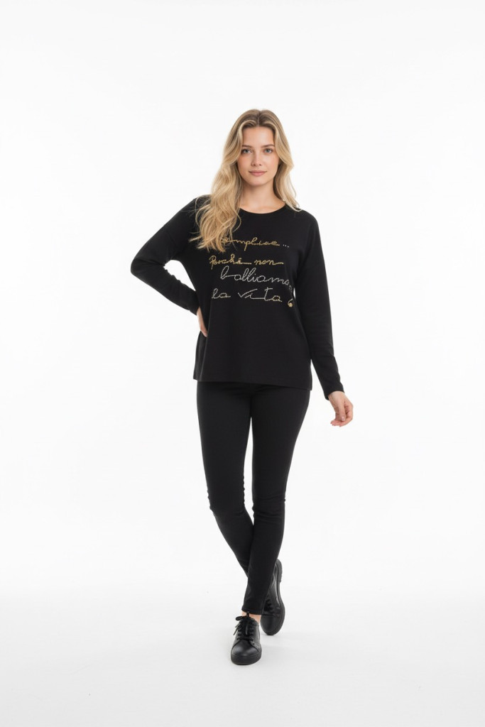 Elisa Cavaletti fekete alapon köves hosszú ujjú felső.