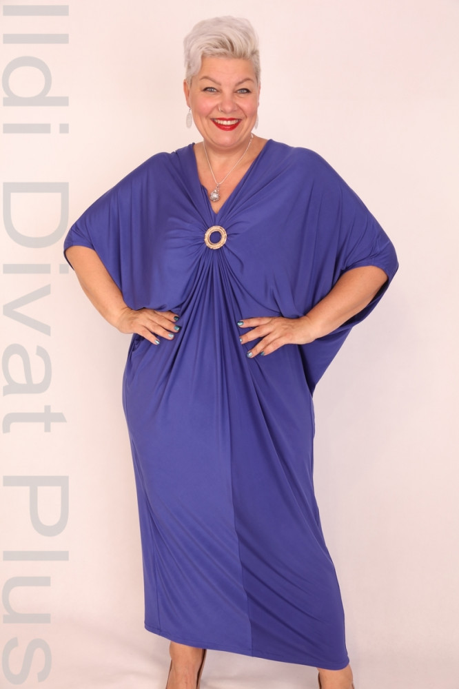 Anne Scarlet királykék színű, V-kivágott, mell részén díszcsatos, húzott, lezser fazonú maxi ruha.