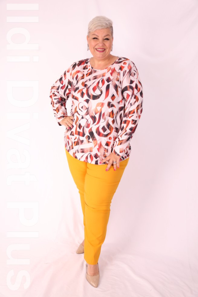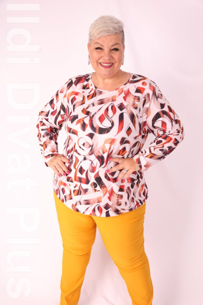 Livello Barna-Beige Mintás Kerek Nyakú Felső