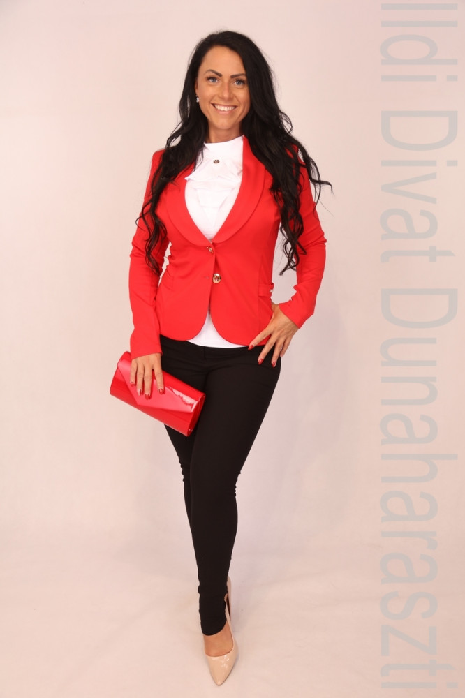 Mystic Day piros színű, galléros, aranyozott gombos, karcsúsított fazonú blézer.