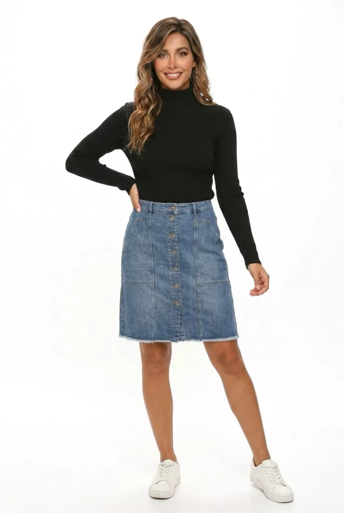Rosner farmerkék elején gombos alján rojtos farmer szoknya.