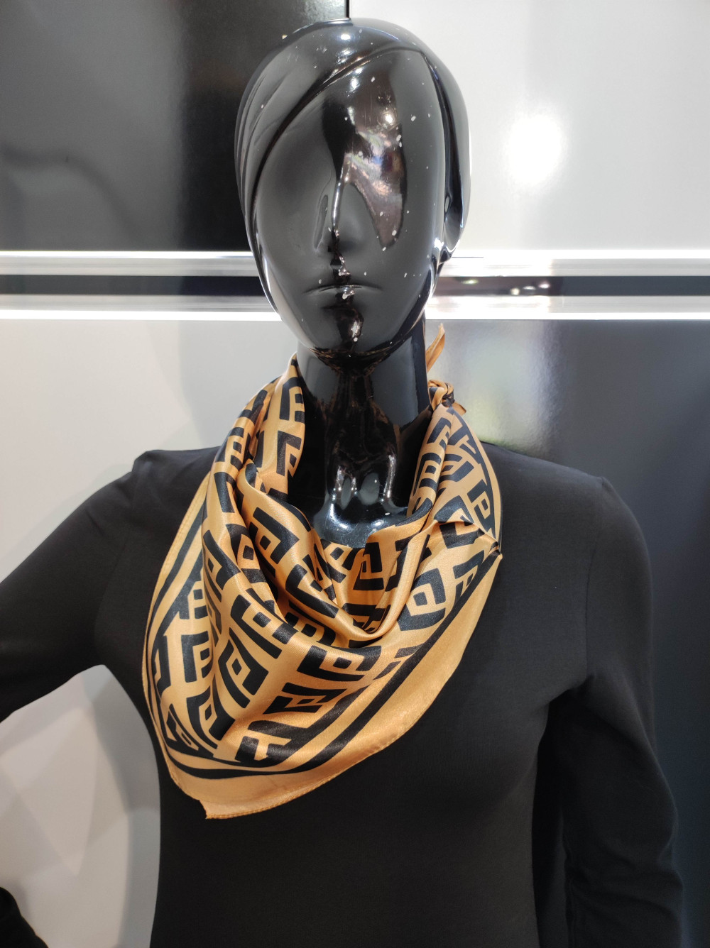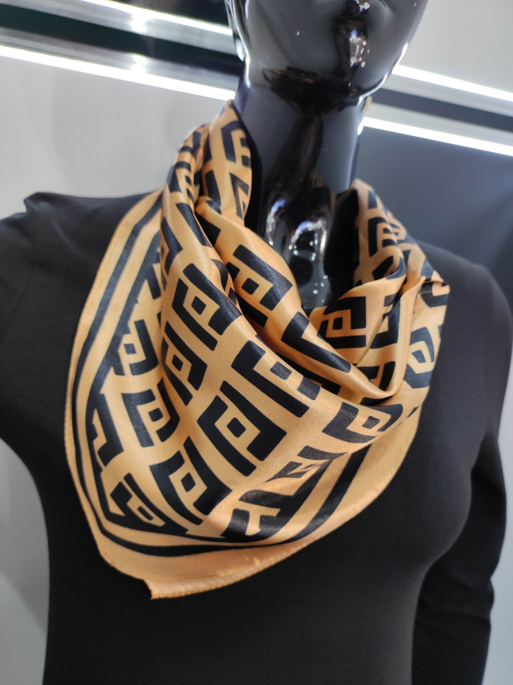 Barna-Fekete Mintás Hebe Szatén Kendő