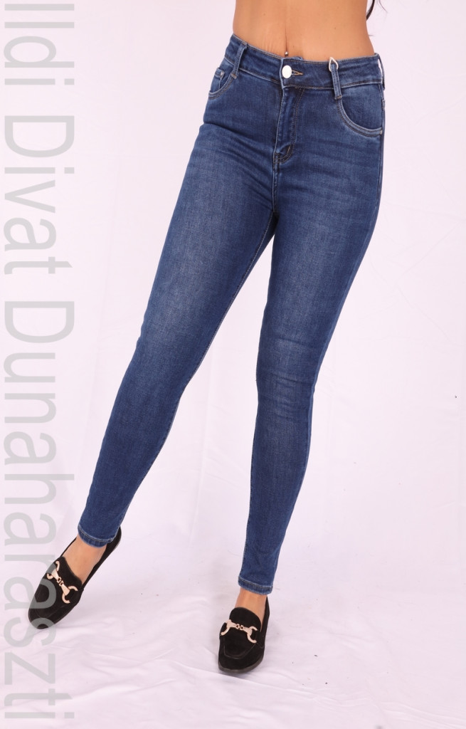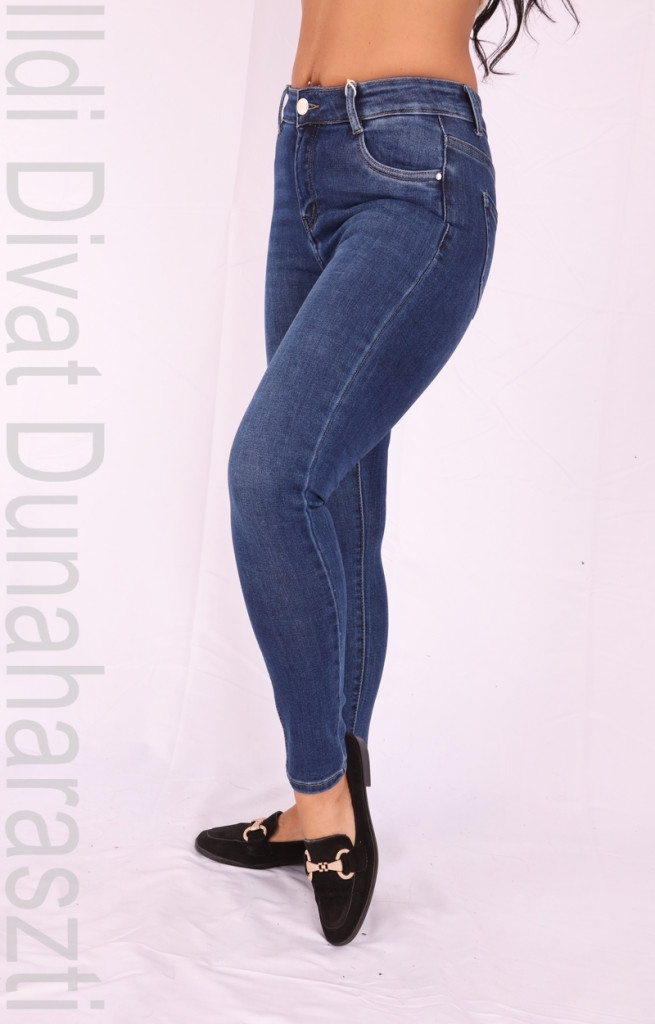 M.Sara farmerkék színű, elején és hátulján zsebes, szűk szárú farmernadrág.