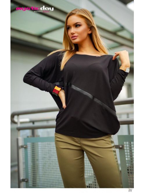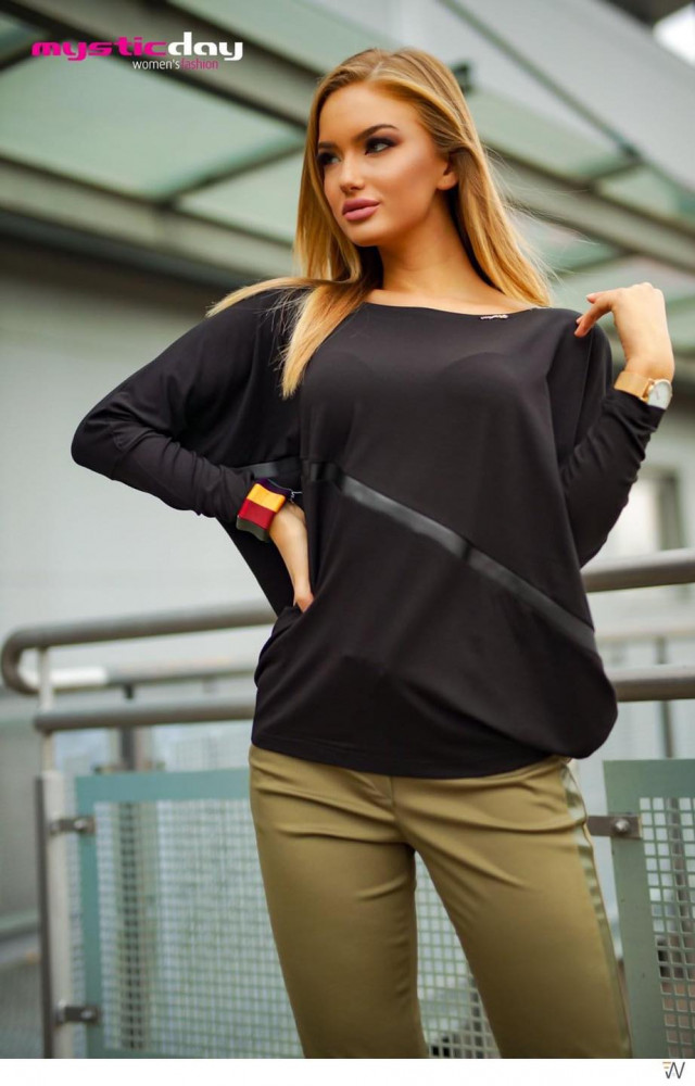 Mystic Day fekete színű, elején átlósan fekete műbőr betétes, lenge fazonú felső.