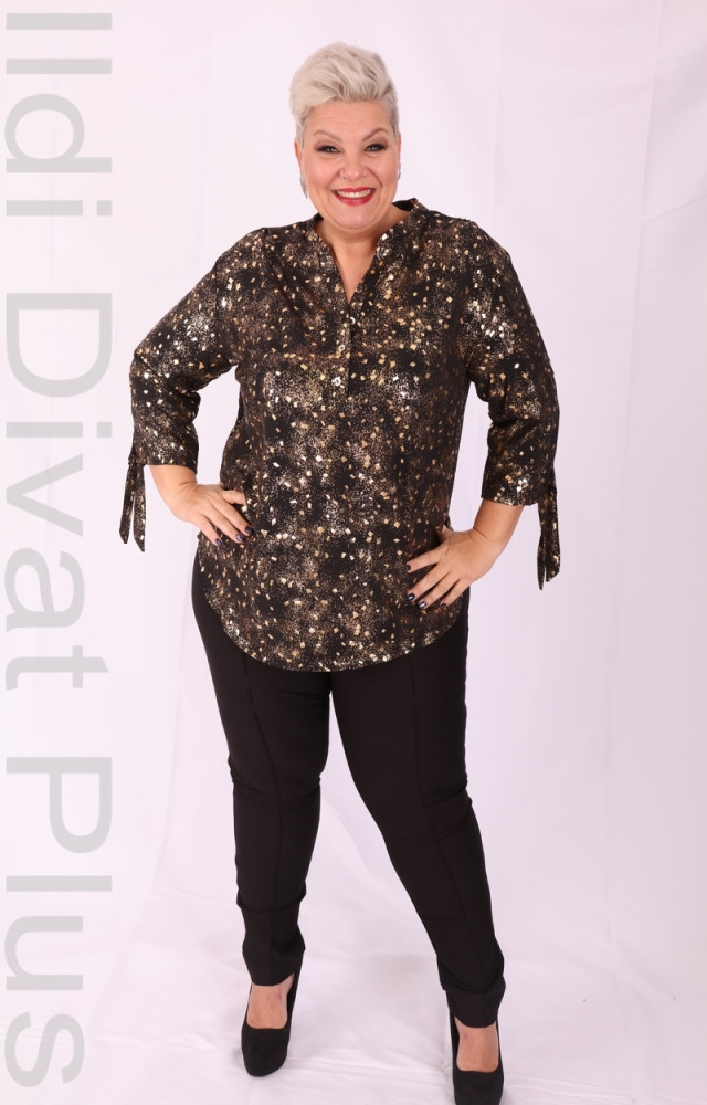 Fekete-arany mintás, nyakán gombos ingtunika.