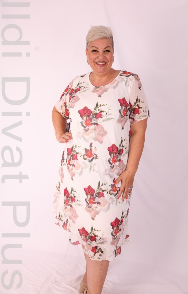 Exlusíve ekrü alapon bordó virágos muszlinos alkalmi ruha.