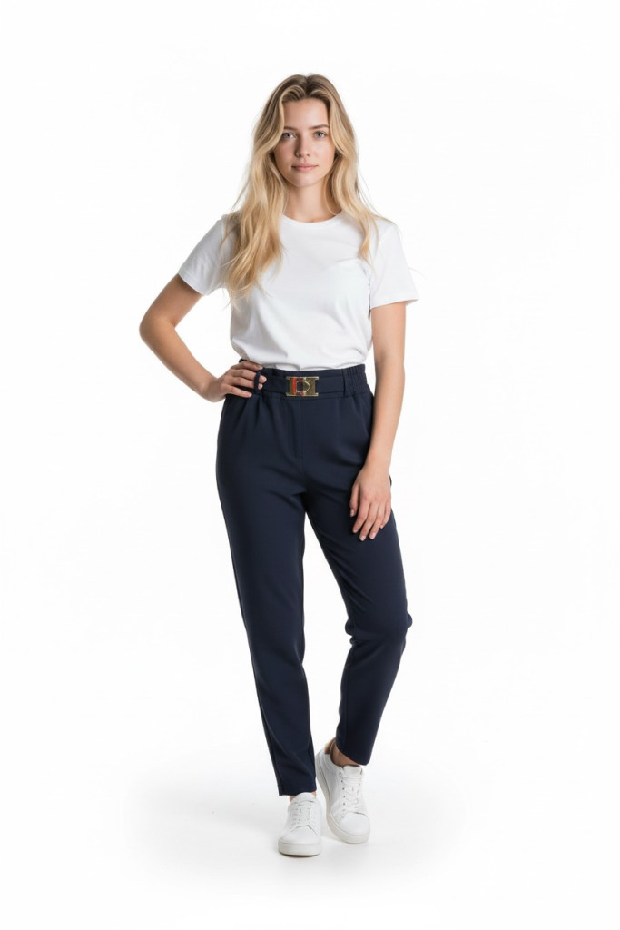 Amore sötétkék gumis derekú arany csattos nadrág.